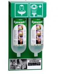 Dit oogspoelstation bestaat uit twee x 1 liter oogwater en een wandhouder. Deze wandhouder is geschikt voor in voertuigen, zoals