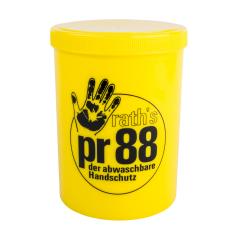 Deze handcreme PR88 is een creme die de huid beschermt voor het olieachtige, vettige vervuilingsgebied en sterk hechtende vervuilingen. Deze creme moet opgebracht worden voordat u aan de werkzaamheden begint. De PR88 handcreme wordt ook wel de onzichtbare handschoen genoemd. De droge elastische en grip vaste bescherm film vormt een werkzame contact barriere tussen de huid en de inwerkende werkstoffen.